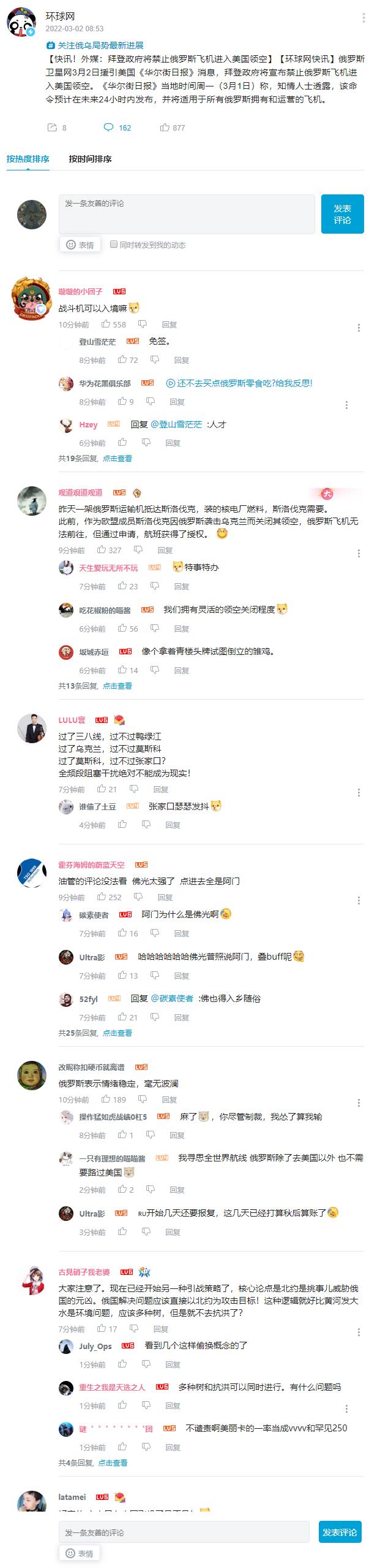 【快讯!外媒:拜登政府将禁止俄罗斯飞机进入美国领空】【环球网快讯】俄罗斯卫星网3月2日援引美国《华尔街日报》消息,拜登政府将宣布禁止俄罗斯飞机进入美国领空。《华尔街日报》当地时间周一(3月1日)称,知情人士透露,该命令预计在未来24小时内发布,并将适用于所有俄罗斯拥有和运营的飞机。