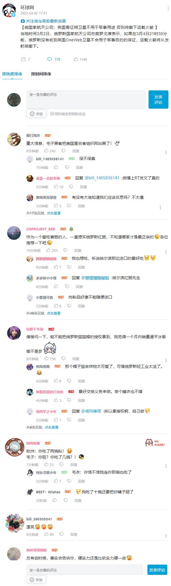 ★★★ 【俄国家航天公司:英国需证明卫星不用于军事用途 否则将撤下运载火箭】