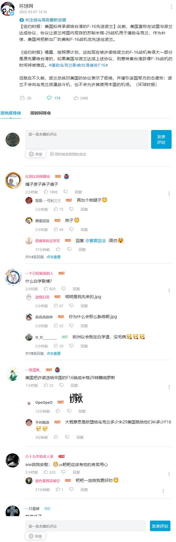 《纽约时报》揭露,按照原计划,这批现在被许诺给波兰的F-16战机有很大一部分是原先要给台湾的,如果美国与波兰达成上述协议,则意味着台湾获得F-16战机的时间将被推迟。#援助乌克兰影响台湾接收F16#