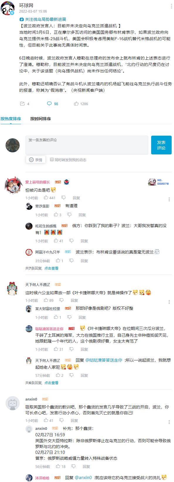 ★★★ 波兰政府发言人:目前并未决定向乌克兰派遣战机