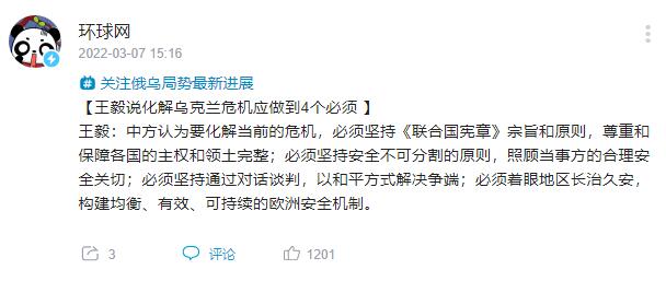 ★★★ 王毅说化解乌克兰危机应做到4个必须