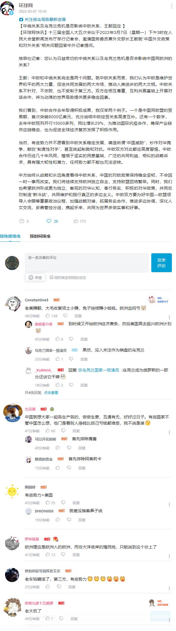 【中俄关系及乌克兰危机是否影响中欧关系,王毅回应 】