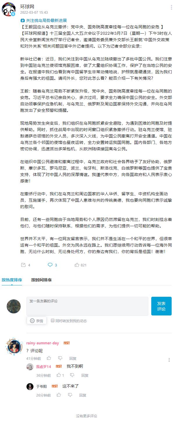 【王毅回应从乌克兰撤侨:党中央、国务院高度牵挂每一位在乌同胞的安危 】
