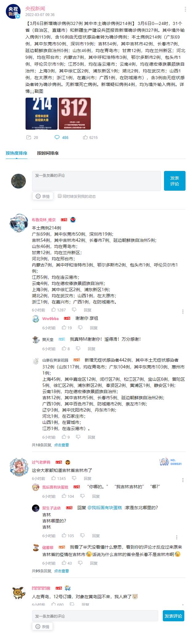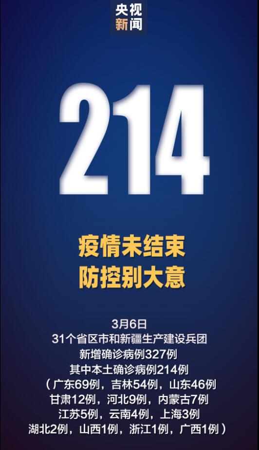 ★★★ 3月6日新增确诊病例327例 其中本土确诊病例214例