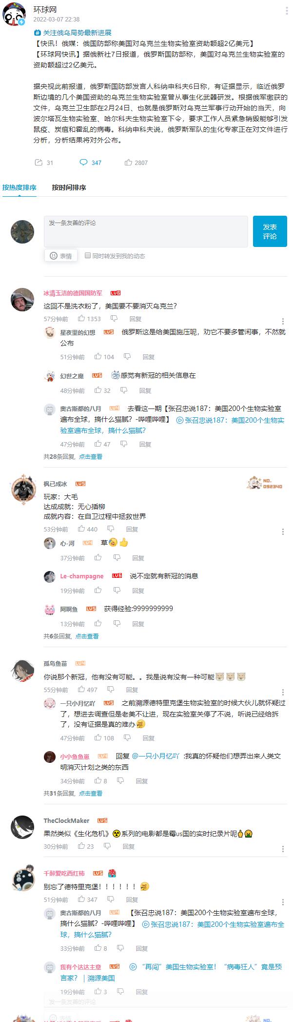 ★★★ 快讯!俄媒:俄国防部称美国对乌克兰生物实验室资助额超2亿美元