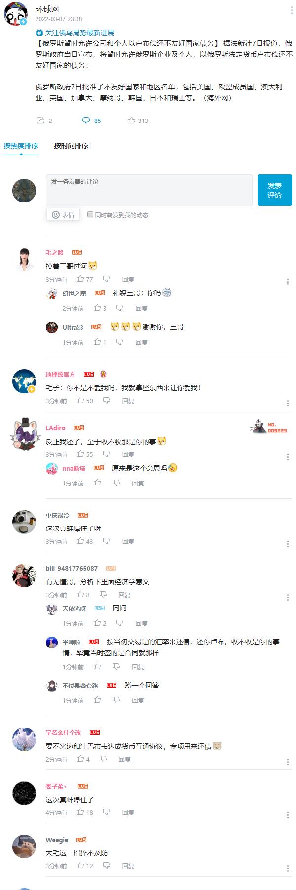 【俄罗斯暂时允许公司和个人以卢布偿还不友好国家债务】 据法新社7日报道,俄罗斯政府当日宣布,将暂时允许俄罗斯企业及个人,以俄罗斯法定货币卢布偿还不友好国家的债务。