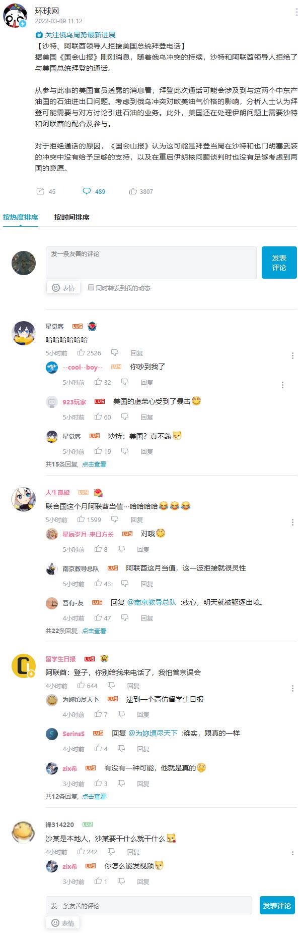 据美国《国会山报》刚刚消息,随着俄乌冲突的持续,沙特和阿联酋领导人拒绝了与美国总统拜登的通话。