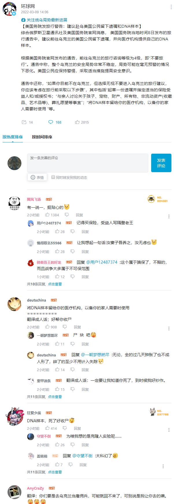 ★★★ 美国务院发旅行警告:建议赴乌美国公民留下遗嘱和DNA样本