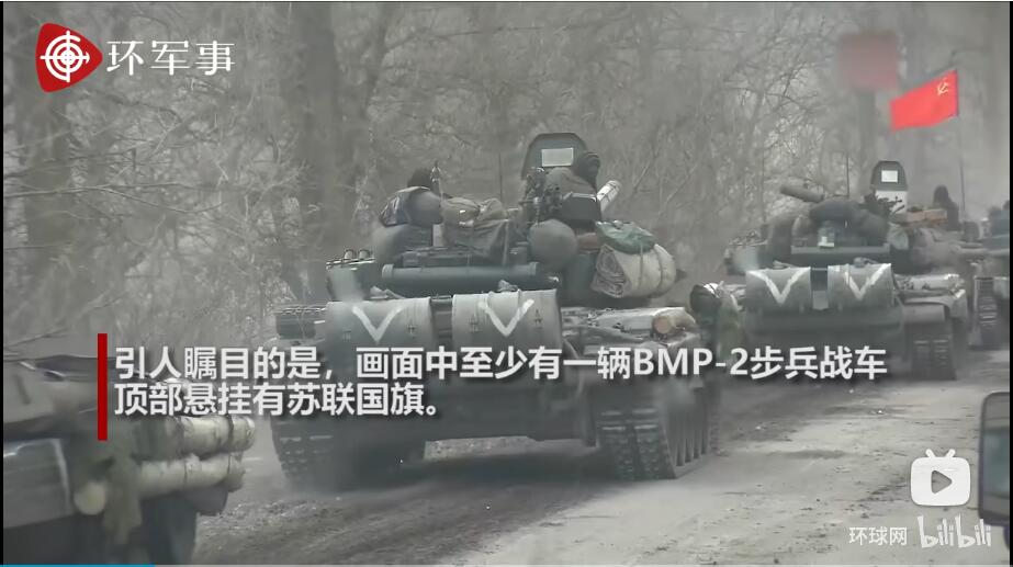 俄乌局势 | 俄媒最新画面:俄军坦克战车火炮在乌克兰境内推进,悬挂苏联国旗引人瞩目