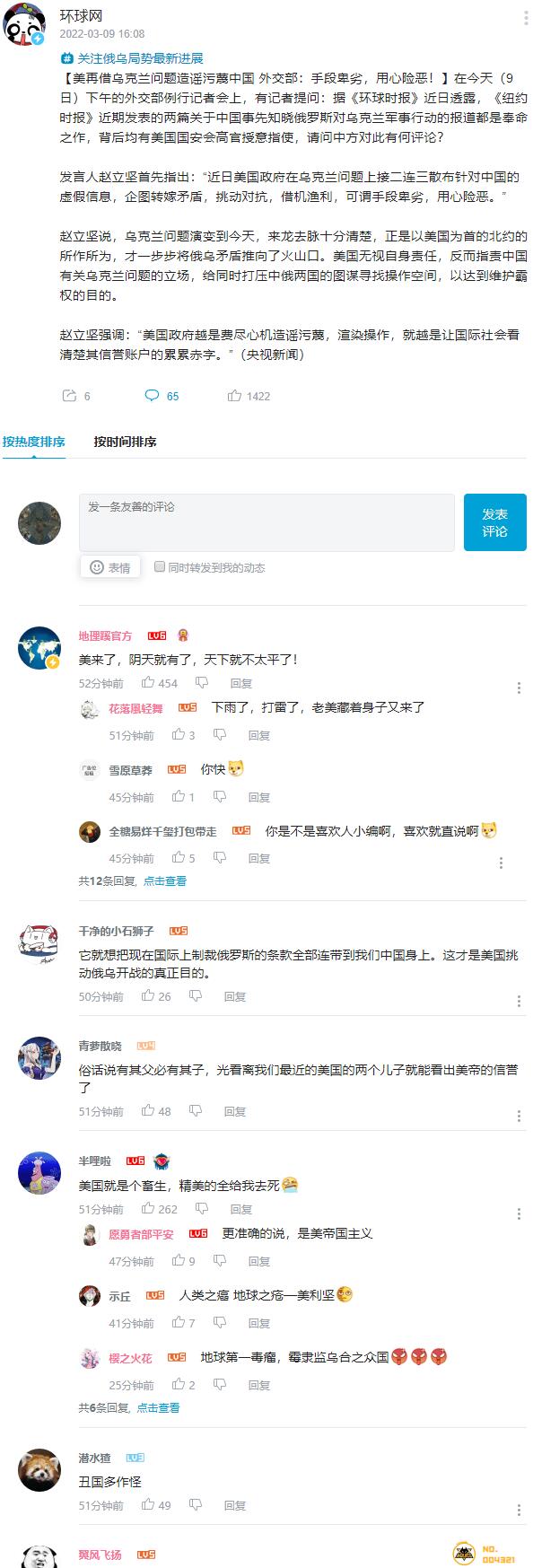 【美再借乌克兰问题造谣污蔑中国 外交部:手段卑劣,用心险恶!】在今天(9日)下午的外交部例行记者会上,有记者提问:据《环球时报》近日透露,《纽约时报》近期发表的两篇关于中国事先知晓俄罗斯对乌克兰军事行动的报道都是奉命之作,背后均有美国国安会高官授意指使,请问中方对此有何评论?