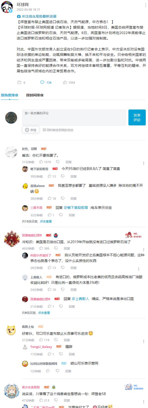 ★★★ 拜登宣布禁止美国进口俄石油、天然气能源,中方表态!