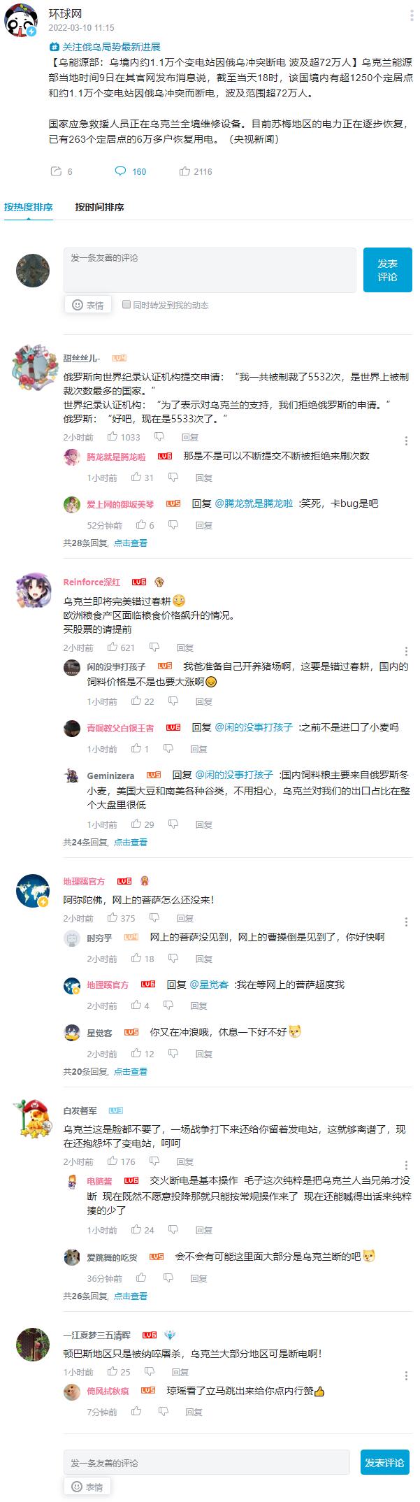 ★★★ 乌能源部:乌境内约1.1万个变电站因俄乌冲突断电 波及超72万人