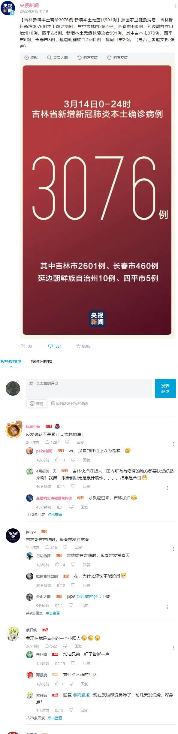 ★★★ 吉林新增本土确诊3076例 新增本土无症状991例