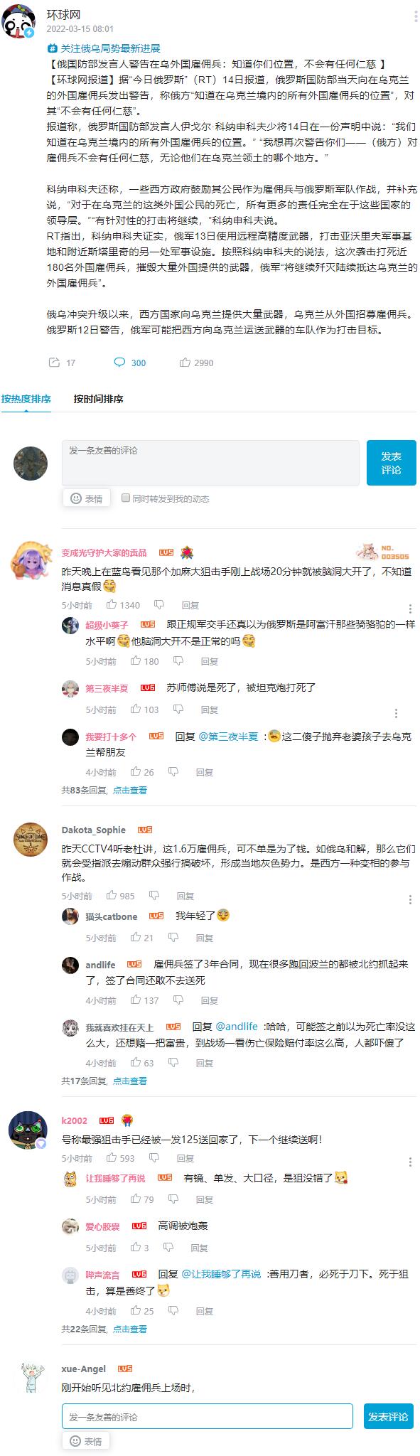 ★★★ 俄国防部发言人警告在乌外国雇佣兵:知道你们位置,不会有任何仁慈