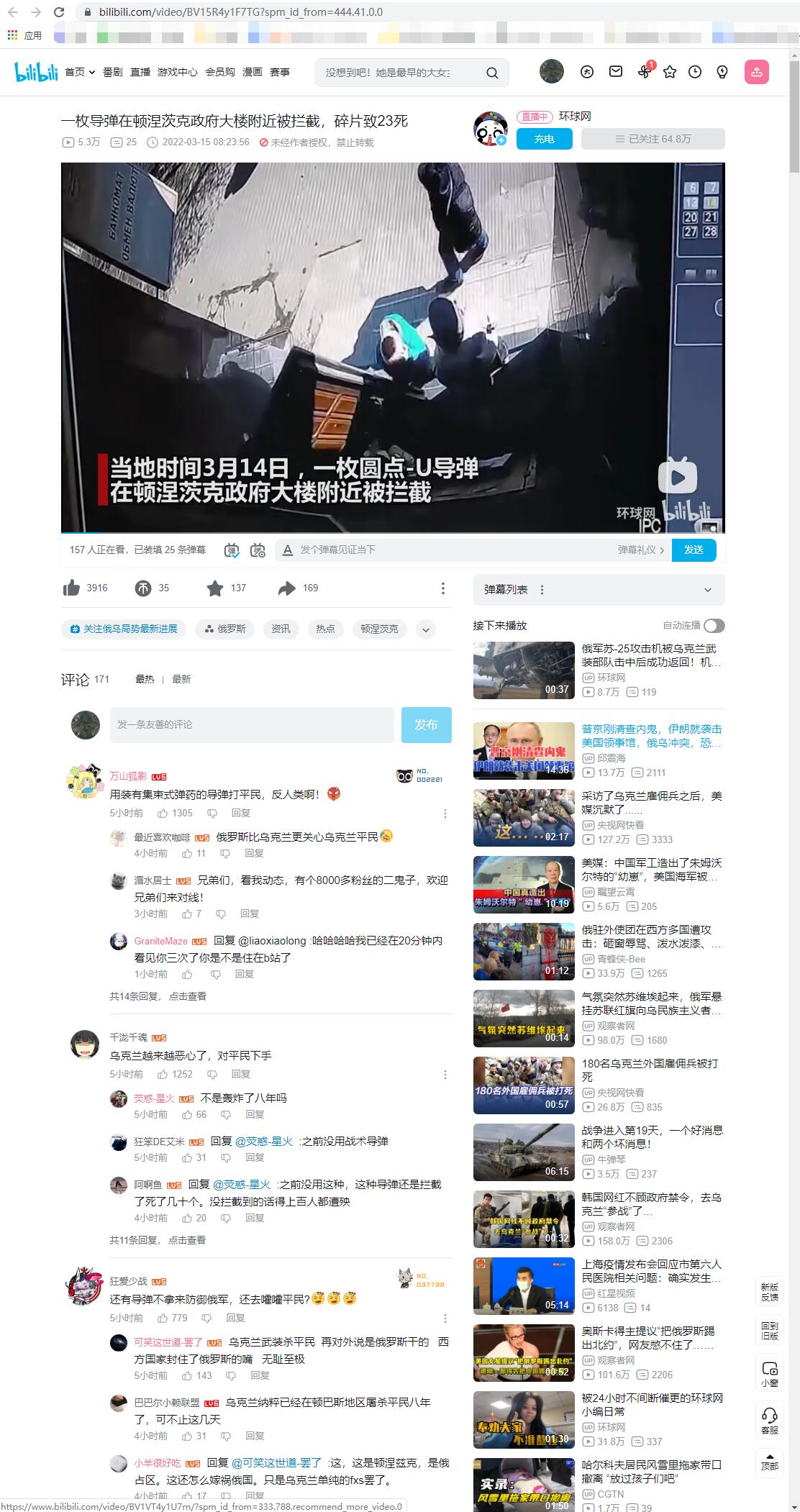 3月14日新增本土确诊3507例 其中吉林新增本土确诊3076例 | 俄国防部发言人警告在乌外国雇佣兵:知道你们位置,不会有任何仁慈 | 一枚导弹在顿涅茨克政府大楼附近被拦截,碎片致23死