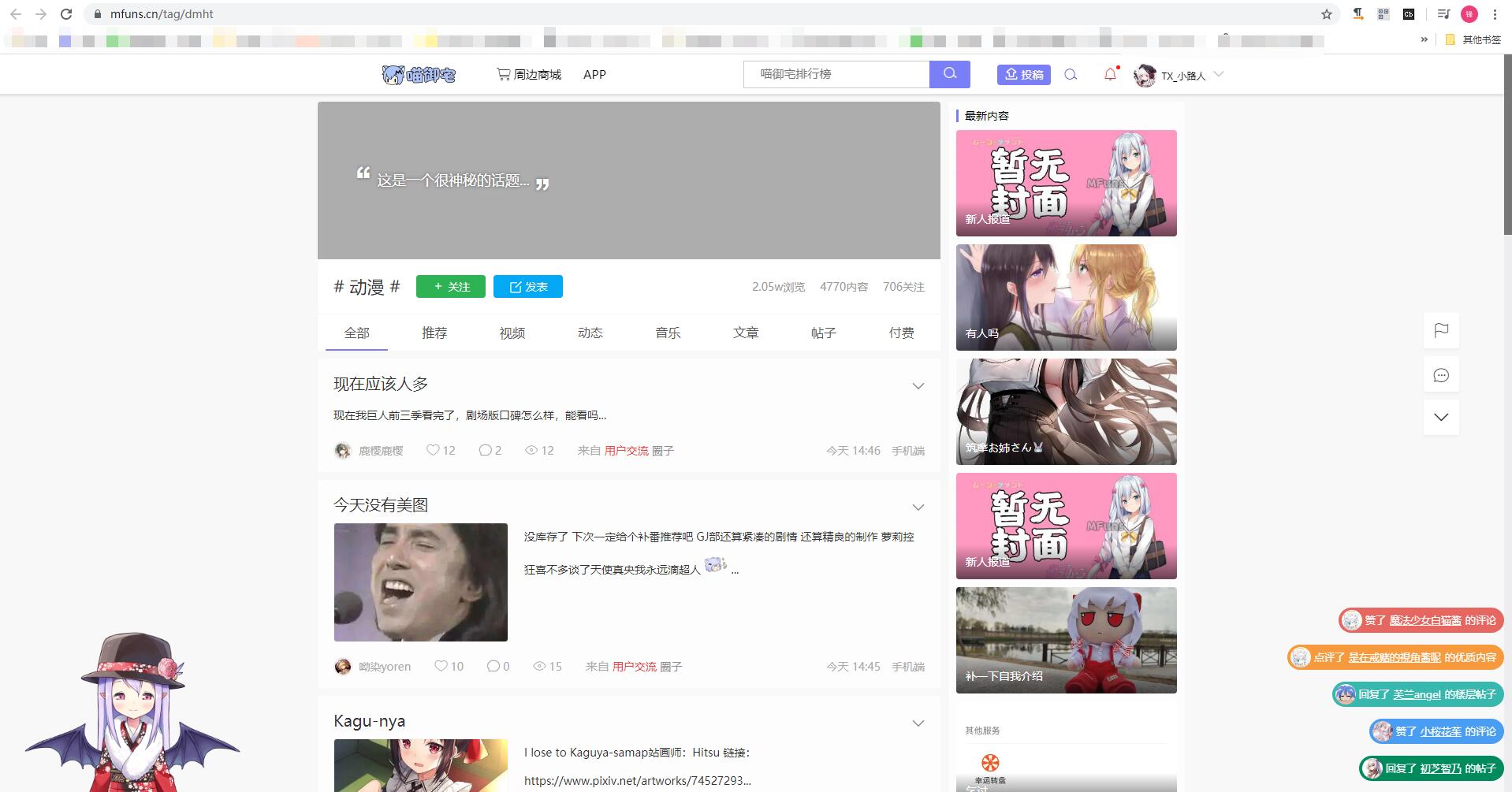 中午逛b站看视频发现了一个网站,网站网址为: https://www.mfuns.cn/ ,一个动漫二次元网站,还不错。截个该网站图片: