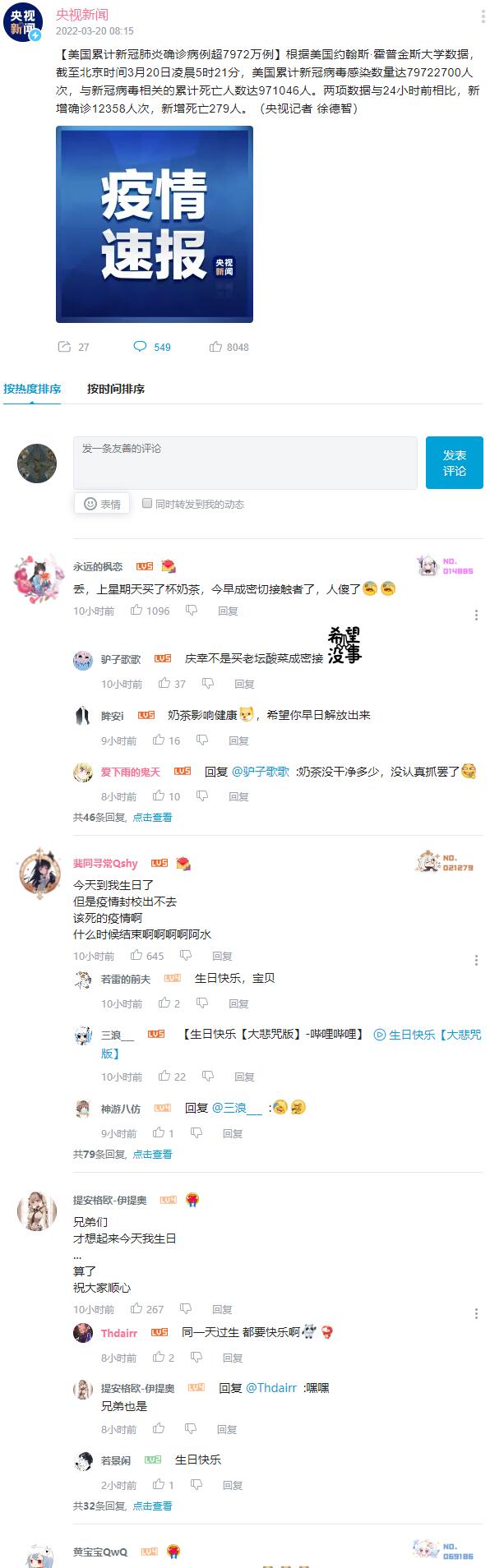 ★★★ 美国累计新冠肺炎确诊病例超7972万例