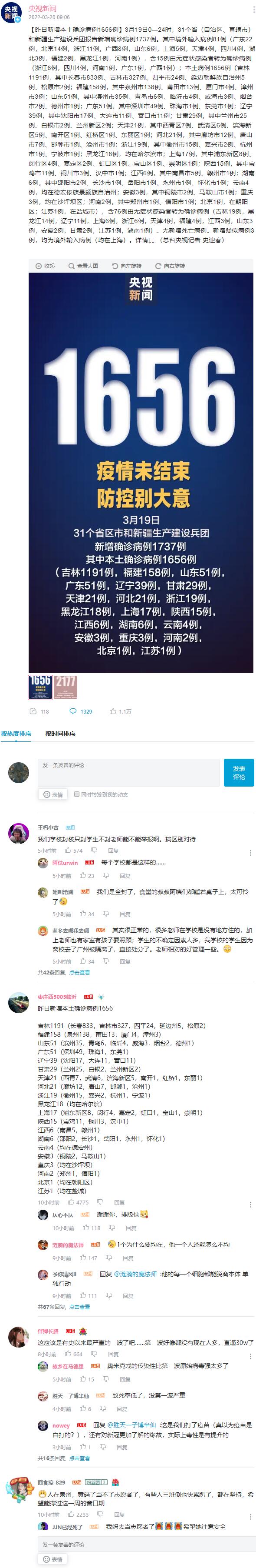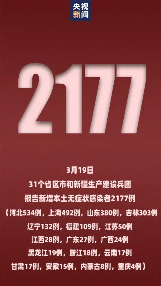 【昨日新增本土确诊病例1656例】3月19日0—24时,31个省(自治区、直辖市)和新疆生产建设兵团报告新增确诊病例1737例。其中境外输入病例81例(广东22例,北京14例,浙江11例,广西8例,山东6例,上海5例,天津4例,四川4例,湖北3例,福建2例,黑龙江1例,河南1例),含15例由无症状感染者转为确诊病例(浙江8例,四川4例,河南1例,广东1例,广西1例);