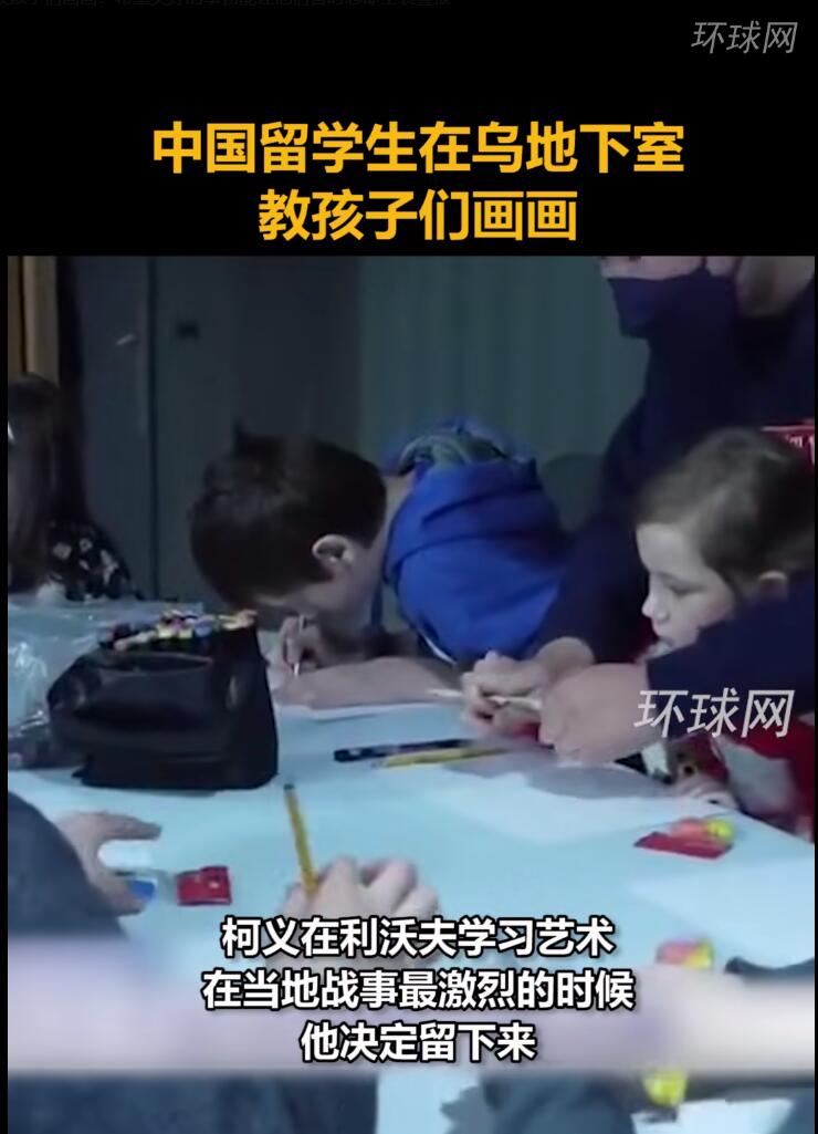 在乌克兰西部城市利沃夫一栋小楼的地下室里,中国留学生柯义正在给20多位乌克兰孩子上美术课。柯义在利沃夫学习艺术,在当地战事最激烈的时候,他决定留下来。课堂上,他教孩子们画下鲜花、蜗牛、小刺猬和房子。他说希望这些美好的事物,能让孩子们暂时忘却经常响起的空袭警报。