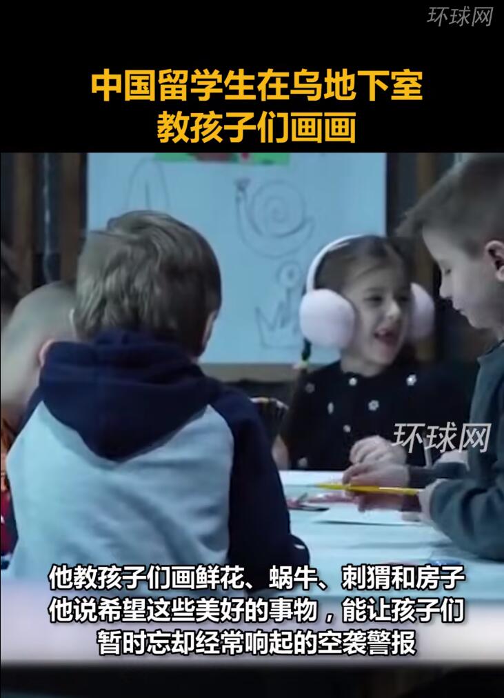 ★★★ 中国留学生在乌地下室教孩子们画画:希望美好的事物能让他们暂时忘却空袭警报