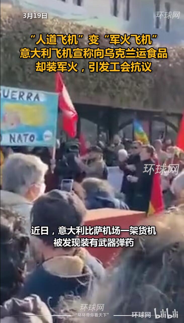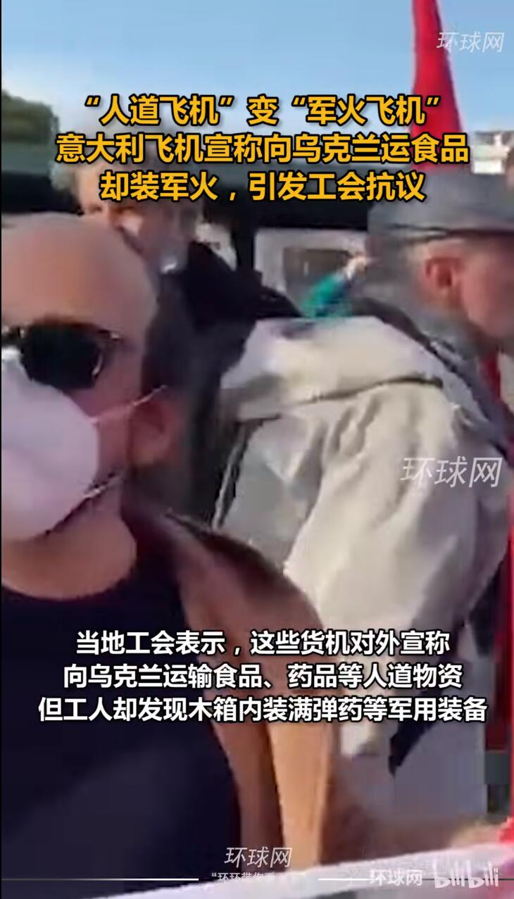 近日,意大利比萨机场一架货机被发现装有武器弹药。当地工会表示,这些货机对外宣称向乌克兰运输食品、药品等人道物资,但工人们却发现木箱内装满弹药等军用装备。工会称意政府正将国家拖入战争,要求此类货机停飞;意大利工人拒绝装运向乌运军火飞机,并定于19日举行抗议活动。