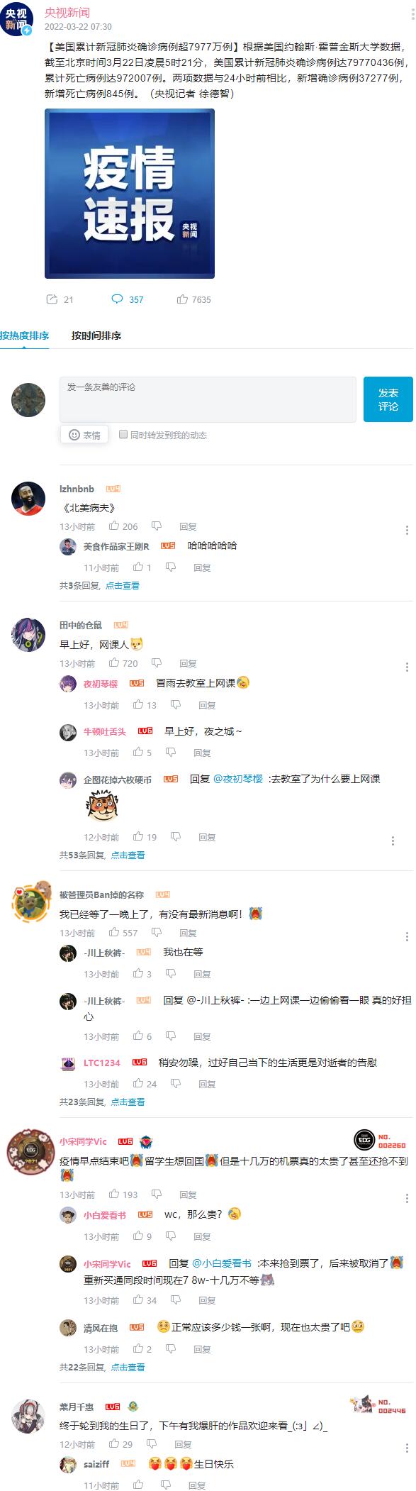 ★★★ 美国累计新冠肺炎确诊病例超7977万例
