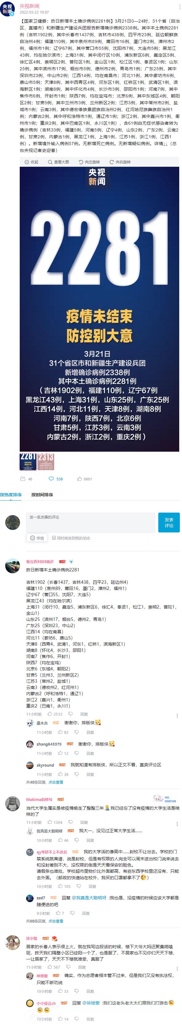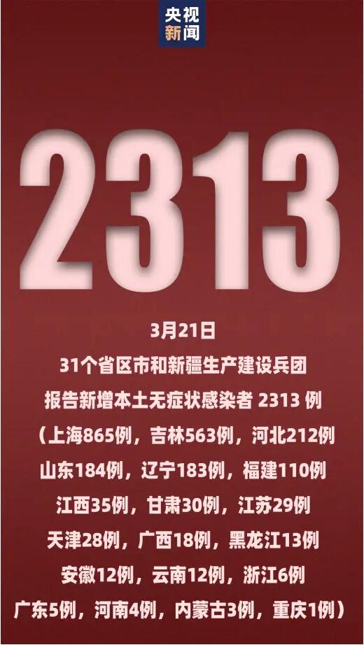 【国家卫健委:昨日新增本土确诊病例2281例】3月21日0—24时,31个省(自治区、直辖市)和新疆生产建设兵团报告新增确诊病例2338例。