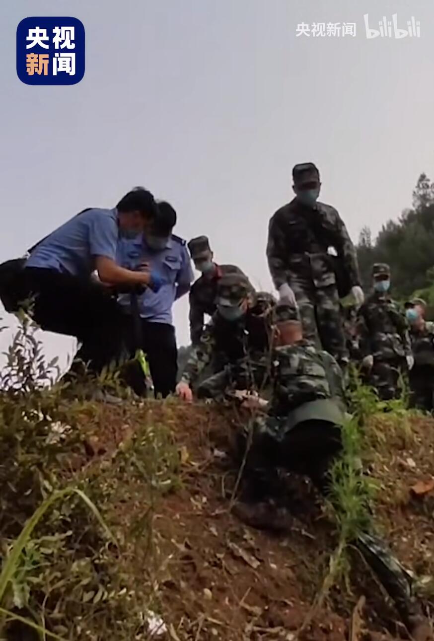 ★★★ 总台记者进入核心救援现场:工作人员对飞机残骸进行标注