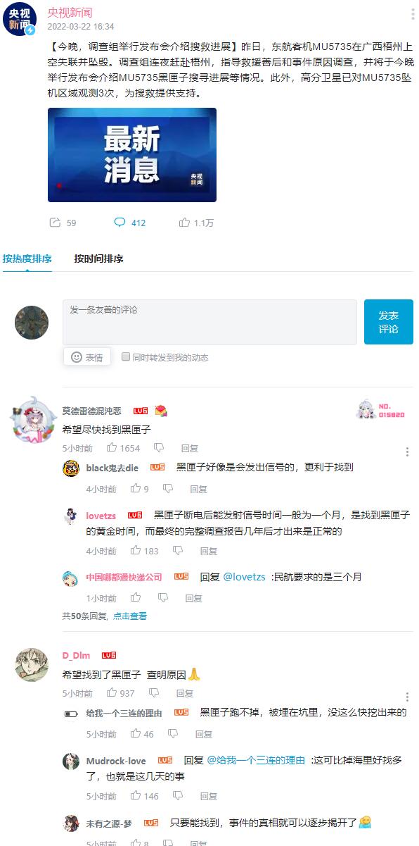 【今晚,调查组举行发布会介绍搜救进展】昨日,东航客机MU5735在广西梧州上空失联并坠毁。调查组连夜赶赴梧州,指导救援善后和事件原因调查,并将于今晚举行发布会介绍MU5735黑匣子搜寻进展等情况。此外,高分卫星已对MU5735坠机区域观测3次,为搜救提供支持。
