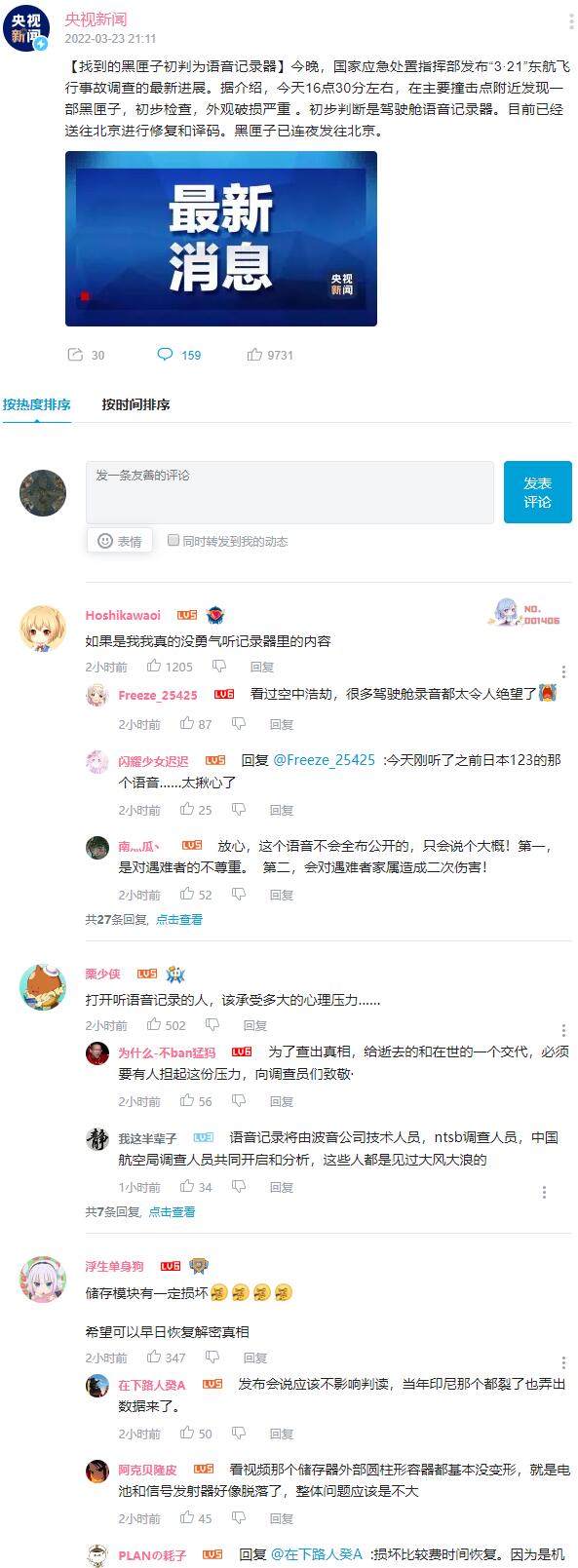 【找到的黑匣子初判为语音记录器】今晚,国家应急处置指挥部发布“3·21”东航飞行事故调查的最新进展。据介绍,今天16点30分左右,在主要撞击点附近发现一部黑匣子,初步检查,外观破损严重 。初步判断是驾驶舱语音记录器。目前已经送往北京进行修复和译码。黑匣子已连夜发往北京。