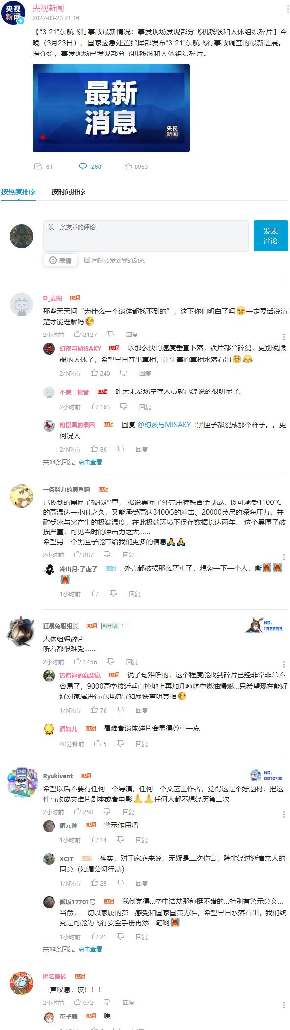 【“3·21”东航飞行事故最新情况:事发现场发现部分飞机残骸和人体组织碎片】今晚(3月23日),国家应急处置指挥部发布“3·21”东航飞行事故调查的最新进展。据介绍,事发现场已发现部分飞机残骸和人体组织碎片。
