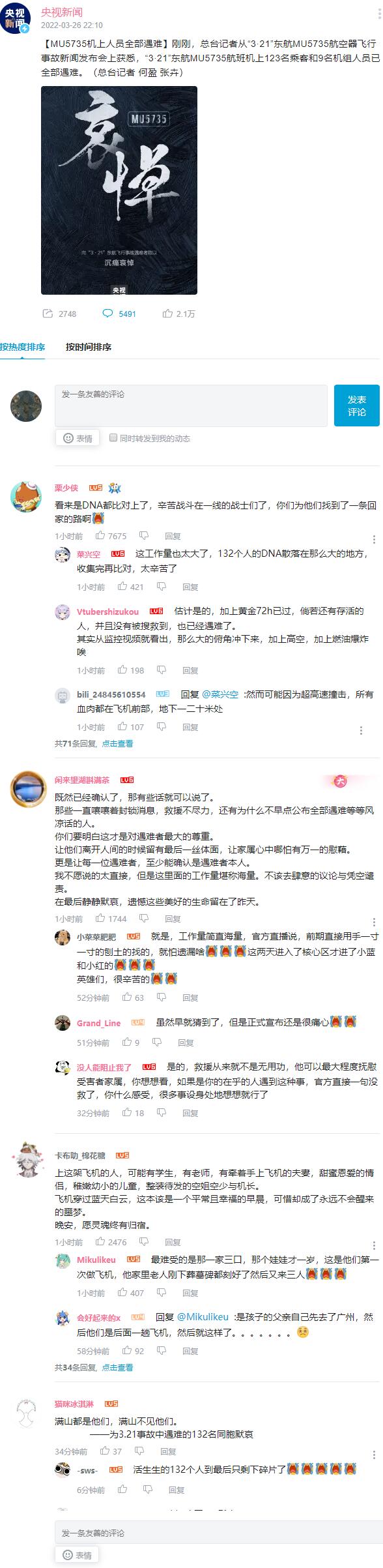 【MU5735机上人员全部遇难】刚刚,总台记者从“3·21”东航MU5735航空器飞行事故新闻发布会上获悉,“3·21”东航MU5735航班机上123名乘客和9名机组人员已全部遇难。(总台记者 何盈 张卉)